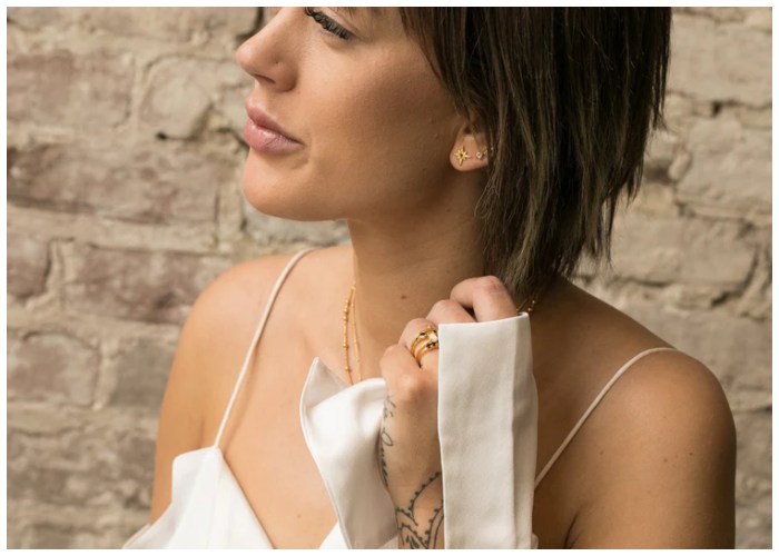 - Bold Jewelry: Swap subtle office jewelry (studs, simple watches) for statement earrings, layered necklaces, or chunky bracelets. Large hoops, bold cuffs, and sparkly rings can all add glamour to your outfit.